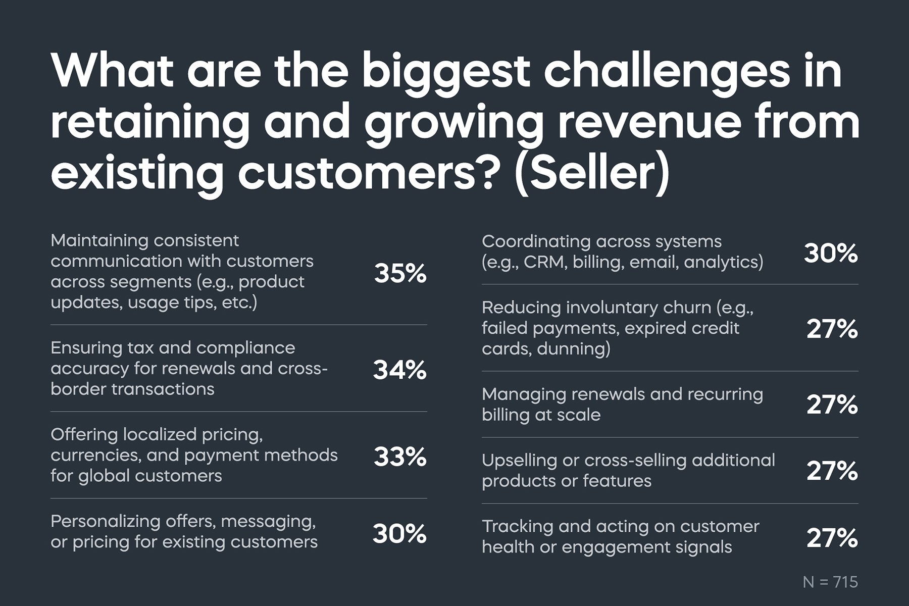 Friction doesn’t end after the first sale — it poses a big risk to retention, too. While 91% of sellers say they’re confident in their post-purchase experience, nearly 8 in 10 buyers report frustrations, from confusing renewal terms to difficulty cancelling to slow customer support.